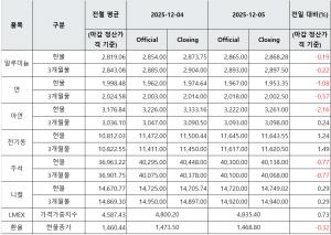 [표] LME 비철금속 및 환율 동향(12월 5일)