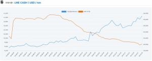 출처=KOMIS런던금속거래소(LME) 전기동 현물 및 3개월물 공식 가격이 15일(현지시간) 기준 톤당 각각 9,649.5달러, 9,622달러를 기록했다. 전기동 가격이 하락했다. 이는 최근 미·중 무역 협상에 대한 기대감이 줄어들면서 나타난 하락세로 분석된다.