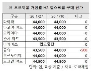 - ■ 日 도쿄제철, 철스크랩 거점별 인상인하…H2 중심값 4만4,000엔
