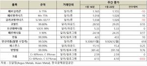 [표] 희유금속 가격 동향(1월 23일)