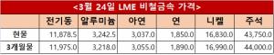지난 22일 LME(런던금속거래소) 아연 현물 오피셜 가격은 톤당 2,822달러, 3개월물은 2,830달러를 기록했으며 지난 23일과 24일에는 각각 현물 2,862달러, 2,854달러와 3개월물 2,865.5달러, 2,855달러에 형성됐다.