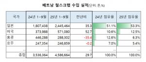 5월부터 8월까지 누적 기준 수출은 22만5천 톤으로 전년동기대비 22.3% 감소했다. 같은 기간 베트남(63만6천 톤)과 태국(52만1천 톤)으로의 수출이 각각 31.3%, 4.1% 증가한 것과 대비된다. 인도네시아는 베트남, 태국과 함께 한국의 아세안 지역 최대 수출지다.