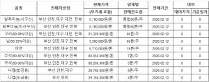 [표] 조달청 방출 가격(2월 12일)
