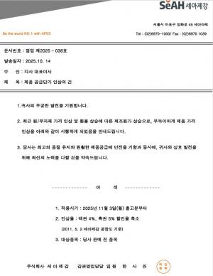 - ■ 세아제강, 11월 강관 전 제품 가격 인상