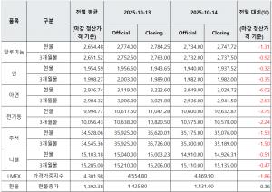 [표] LME 비철금속 및 환율 동향(10월 14일)