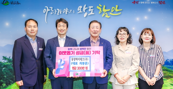함안군이 동양하이테크(대표 최봉훈)가 지역의 어려운 이웃들에게 전달해 달라며 성금 200만원을 기탁했다.