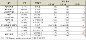 - ■ [표] 희유금속 가격 동향(10월 17일)