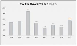 일본 소형봉강 생산은 2021년(779만톤)을 고점으로 올해까지 4년 연속 감소세다. 소형봉강 생산 대부분이 철근용임을 감안하면 일본 철근 수요는 올해에도 추가 저점에 무게가 실리고 있다.