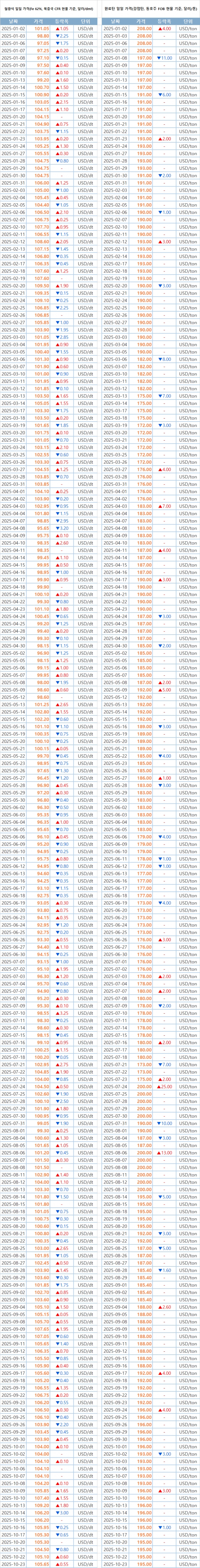 [표] 일일 철강 원료 가격 동향(10월 23일)