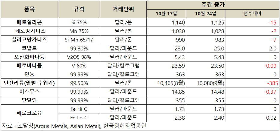 - ■ [표] 희유금속 가격 동향(10월 17일)