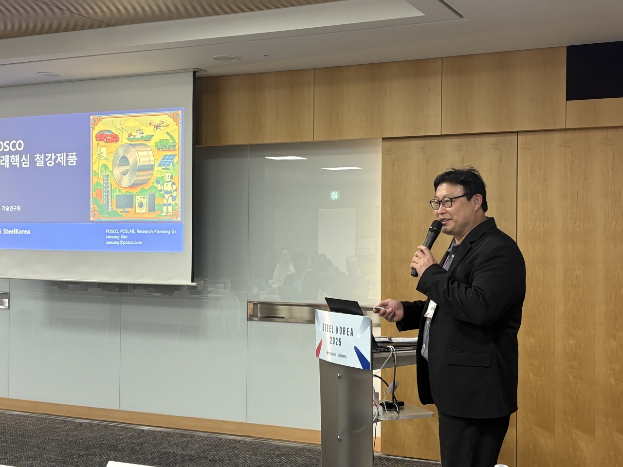 ▲ 포스코 기술연구원 김재성 리더는 ‘2025 GVC 컨퍼런스’에서 ‘고부가 철강재 개발 동향 및 향후 과제’를 주제로 발표중이다.포스코 기술연구원 김재성 리더는 ‘2025 GVC 컨퍼런스’에서 ‘고부가 철강재 개발 동향 및 향후 과제’를 주제로, “원가 혁신과 고급 제품 중심의 선택과 집중으로 수익성 회복을 추진하겠다”고 5일 밝혔다.