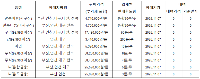 - ■ [표] 조달청 방출 가격(11월 3일)