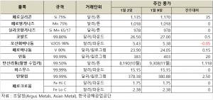 [표] 희유금속 가격 동향(1월 9일)