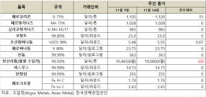 - ■ [표] 희유금속 가격 동향(11월 7일)