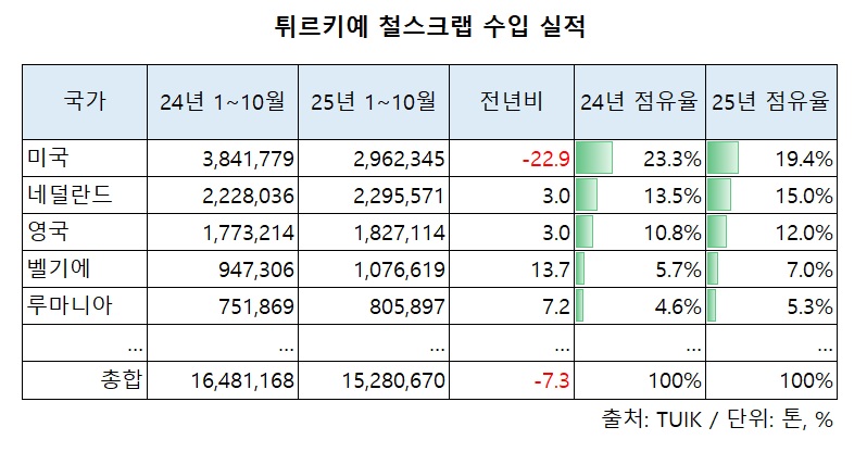 올해 미국산 거래 20% 급감…튀르키예 철스크랩 수입 7년래 최저