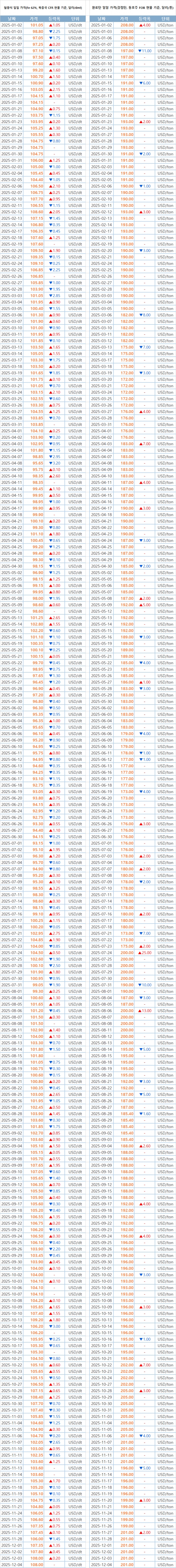 [표] 일일 철강 원료 가격 동향(12월 4일)