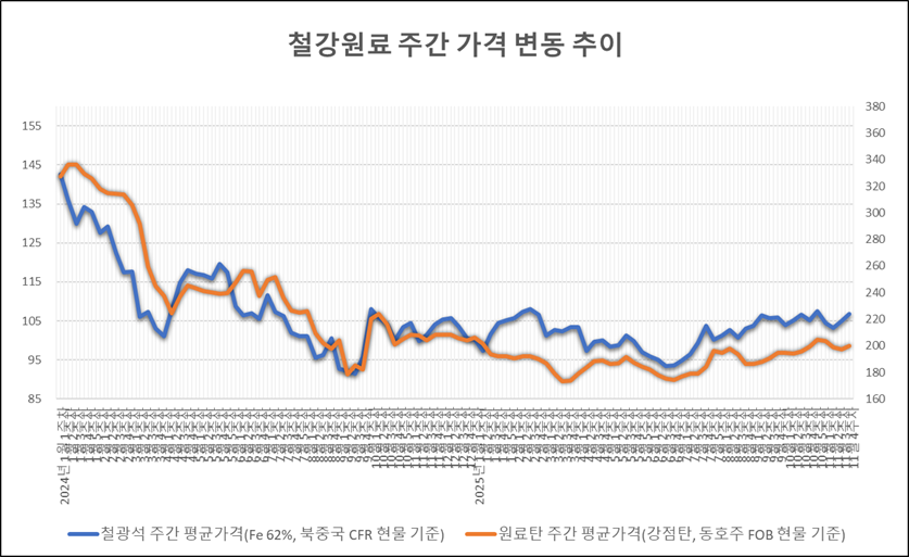 [표] 일일 철강 원료 가격 동향(11월 28일)
