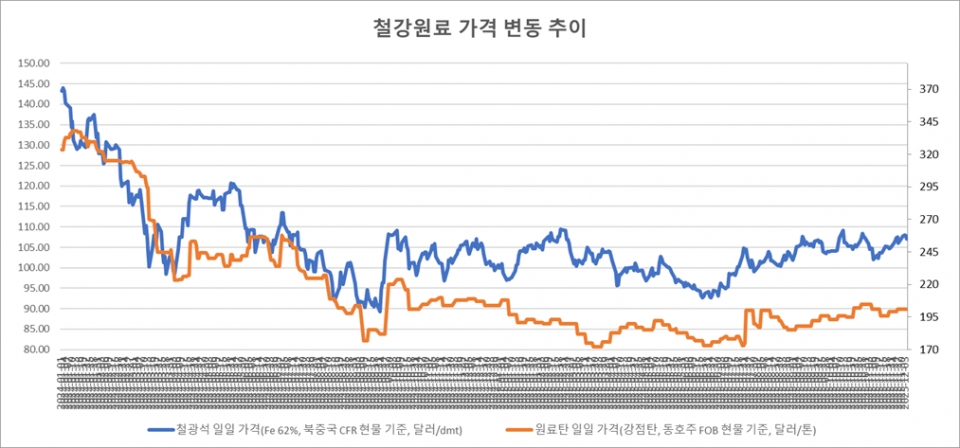 [표] 일일 철강 원료 가격 동향(12월 4일)