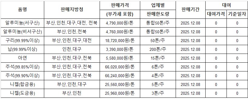 - ■ [표] 조달청 방출 가격(12월 2일)