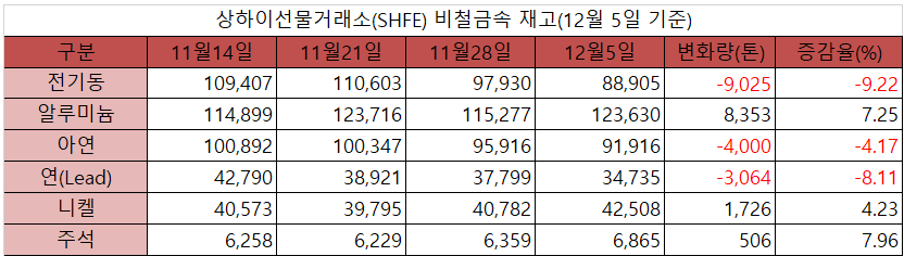- ■ [표] 상하이선물거래소 재고(11월 28일)