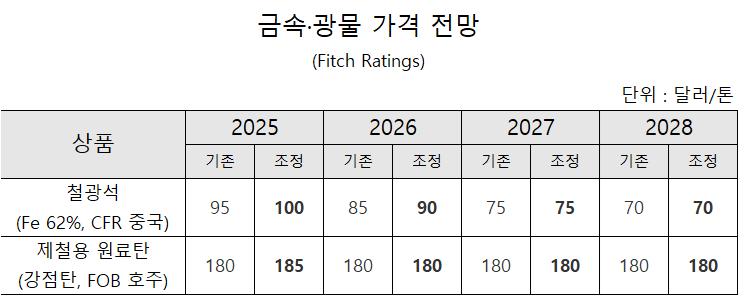 피치, 철광석·원료탄 가격 전망 상향 조정