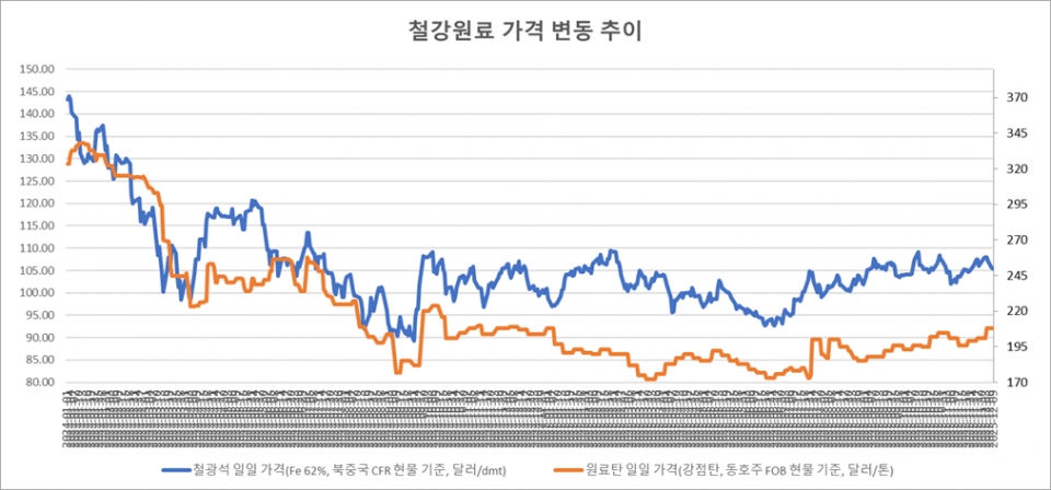 [표] 일일 철강 원료 가격 동향(12월 4일)