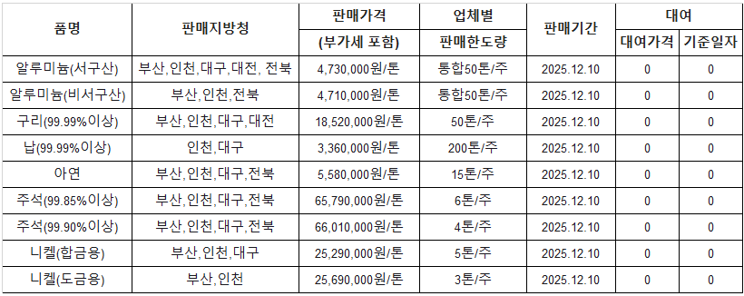 - ■ [표] 조달청 방출 가격(12월 8일)