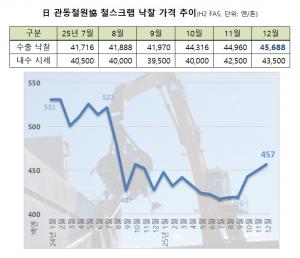 日 관동철원 철스크랩 낙찰價 고공행진…1년 4개월래 최고