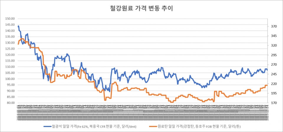 [표] 일일 철강 원료 가격 동향(12월 22일)