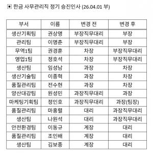 - ■ [인사] 성은스텐레스 2026년 직원 승진 인사