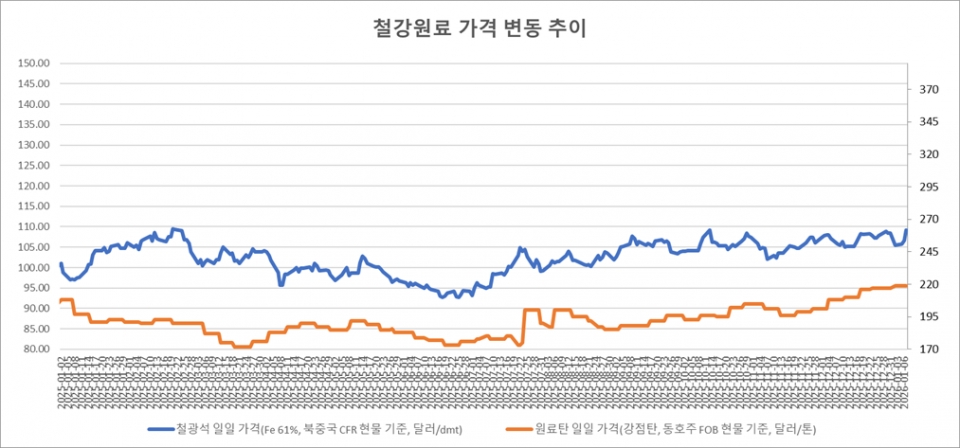 [표] 일일 철강 원료 가격 동향(1월 5일)
