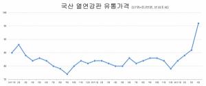 연이은 제강사 공급조절로 5주 연속 상승세다. 5주 연속 상승에 지난해 7월 말(72~73만원) 이후 6개월 만에 최고치다.