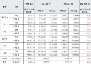 [표] LME 비철금속 및 환율 동향(1월 20일)