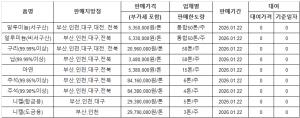 - ■ [표] 조달청 방출 가격(1월 20일)