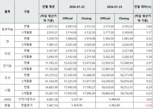 [표] LME 비철금속 및 환율 동향(1월 23일)