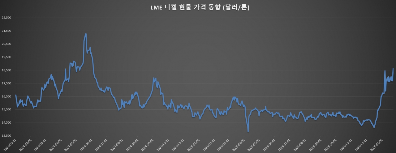 이는 지난해 4월부터 12월까지 이여졌던 톤당 1만 4천~ 1만 5천달러대 박스권에 비해 약 20% 높아진 가격 수준이다. 특히 지지부진한 횡보장을 보인 지난해와 달리, 올해 1월에 진입하자마자 불과 1주~1개월 사이 단기간 가격 변동이라 시장이 받는 충격은 더 큰 편이다.