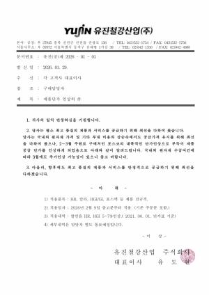 - ■ 유진철강산업, 2월 강관 전 제품 가격 인상