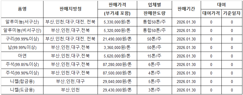 - ■ [표] 조달청 방출 가격(1월 26일)