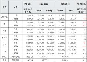 [표] LME 비철금속 및 환율 동향(1월 29일)