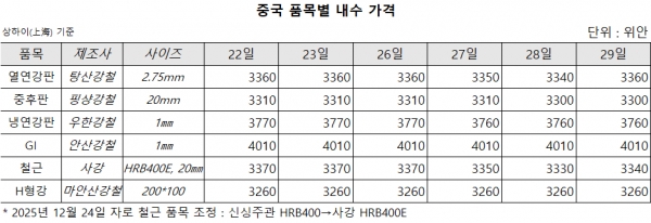 중국 철강업계 관계자는 “춘절 연휴까지 1개월도 남지 않은 만큼, 재고 보충 수요가 점차 증가할 가능성이 높다”고 내다봤다.