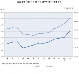 LME 강세와 환율 부담 겹치며 급등국내 세전 판매價 톤당 1,973만5,000원 기록