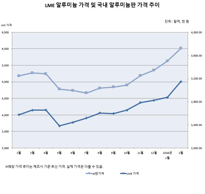 2월 Al판 가격, 전월比 38만원 인상