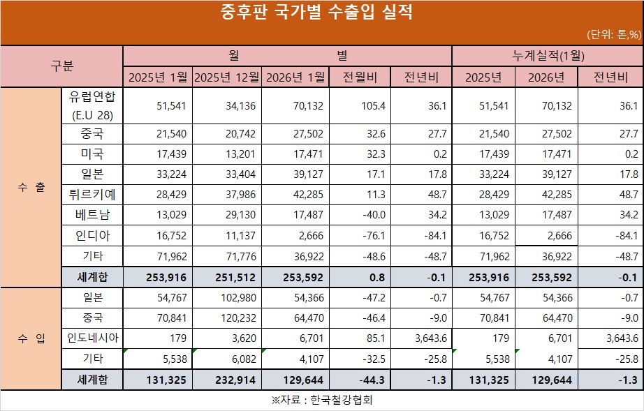 수출 1위 ‘태국’으로 다시 변화…튀르키예향 수출 전년比 8,1% 감소로 2위로 추락국내 STS생산법인 진출 국가 중심으로 물량 집중…이탈리아향 전년比 92% 급증