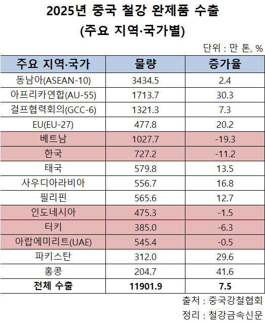 [오늘 중국은] 中 철강 완제품 수출 아프리카·중동↑, 한·베트남↓