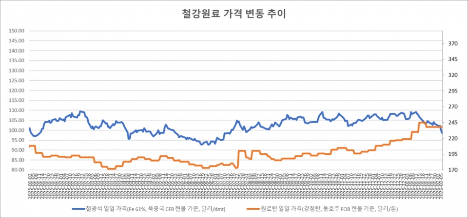 [표] 일일 철강 원료 가격 동향(2월 5일)