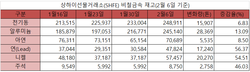 [표] 상하이선물거래소 재고(2월 6일)