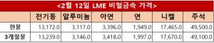 반면, 12일에는 전반적인 금융시장 약세 영향으로 금속 가격이 동반 하락한 가운데 주석 가격도 하락 압력을 받았다. 시장에서는 최근 금속 시장 변동성이 확대되면서 알고리즘 기반 매도 물량이 유입된 점이 가격 하락 요인으로 작용한 것으로 분석했다. 또한 그동안 상대적으로 높은 가격 수준을 유지하며 증시 하락을 일부 상쇄하던 금속 자산에서도 차익 실현 및 위험 회피성 매도가 나타난 것으로 평가된다.