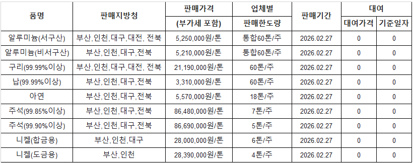 - ■ [표] 조달청 방출 가격(2월 25일)