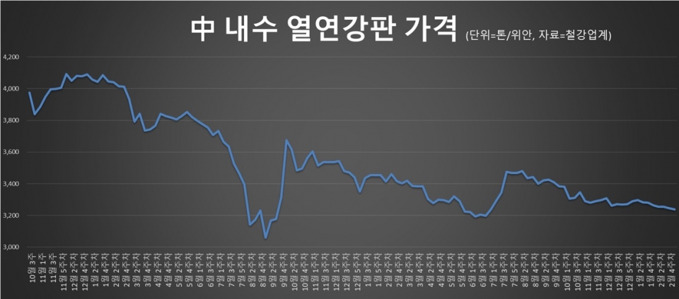 中 열연강판價 3,200위안대 유지…성수기 수요 회복 여부 주목