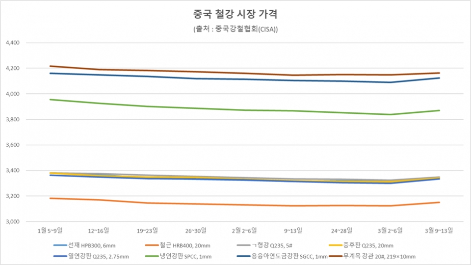 - ■ 中 열연價, 3,200위안대 등락 지속…재고 부담 속 3월 분기점